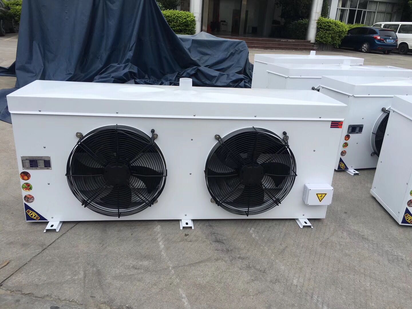 D型(吊頂式)、L型(落地式)、S型(雙出風式)系列空氣冷卻器(又稱 冷風機)是一種適用于各種冷庫(如土建冷庫或組合冷庫)的冷卻降溫設備,分 別使用于不同庫溫的冷庫。它具有結構緊湊,重量輕,不占用冷庫使用面積,庫 溫均勻,效率高等優(yōu)點,使冷庫內貯藏的食品迅速降溫,大大提高了貯藏食品的 保鮮度。